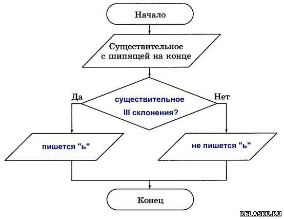 195. В конце существительных III склонения после шипящих в формах именительного и винительного падежей пишется «ь». В конце существительных II склонения после шипящих «ь» не пишется.