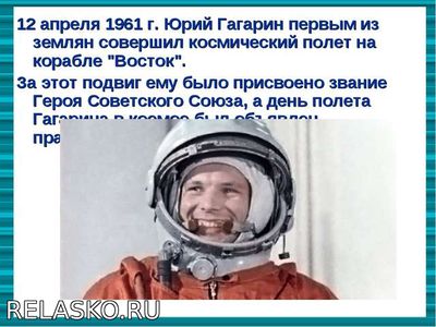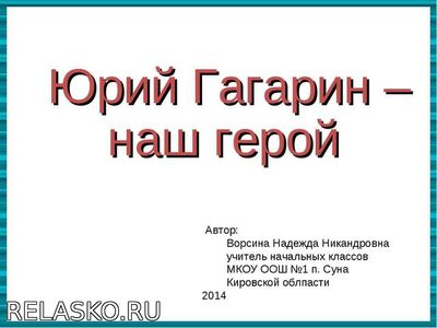Предлагаем вам посмотреть пример доклад - презентация в картинках на тему "Юрий Гагарин - наш герой" для классного часа начальной и средней школы России ФГОС УДД