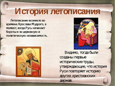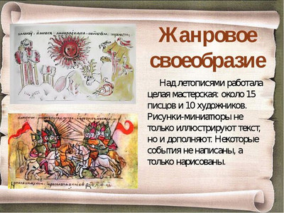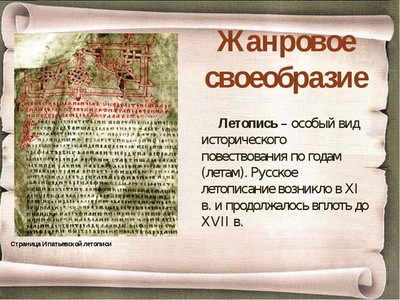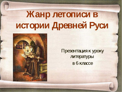 Предлагаем вам посмотреть пример доклад - презентация в картинках на тему "Жанр летописи в истории Древней Руси" для классного часа начальной и средней школы России ФГОС УДД