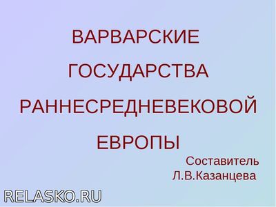 Предлагаем вам посмотреть пример доклад - презентация в картинках на тему "Образование варварских королевств" для классного часа начальной и средней школы России ФГОС УДД