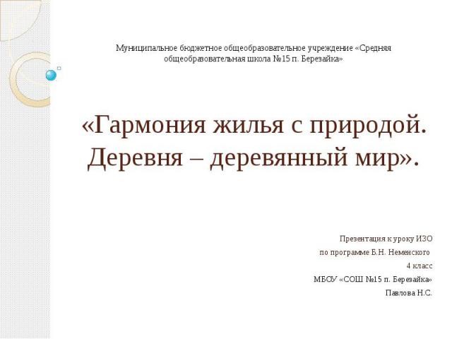 Презентация на тему: Гармония жилья с природой. Деревня - деревянный мир