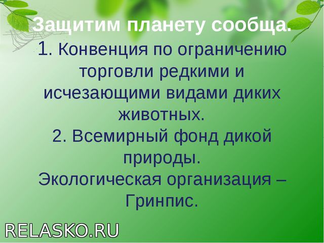 Предлагаем вам посмотреть пример доклад - презентация в картинках на тему "Работа международных экологических организаций России" для классного часа начальной и средней школы России ФГОС УДД