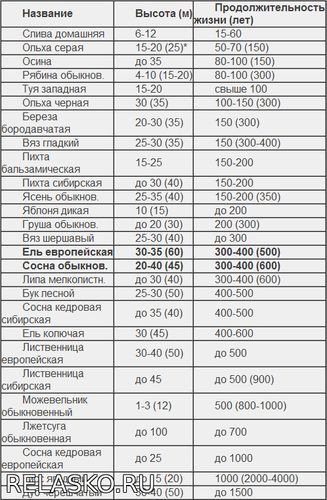 Скачать бесплатно Таблица Продолжительность жизни деревьев