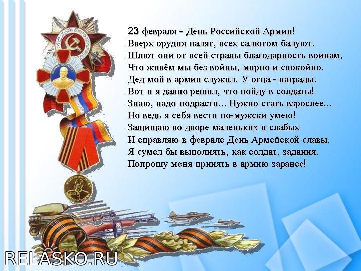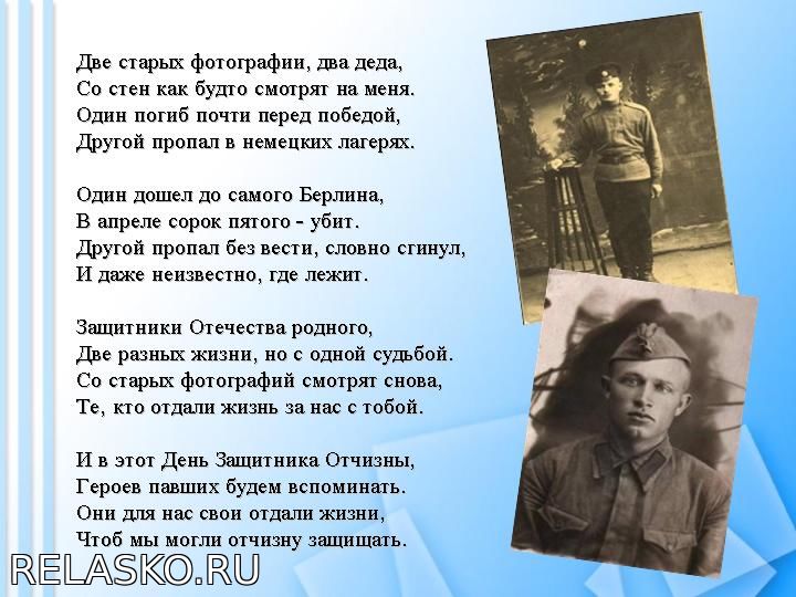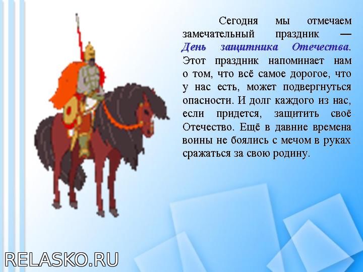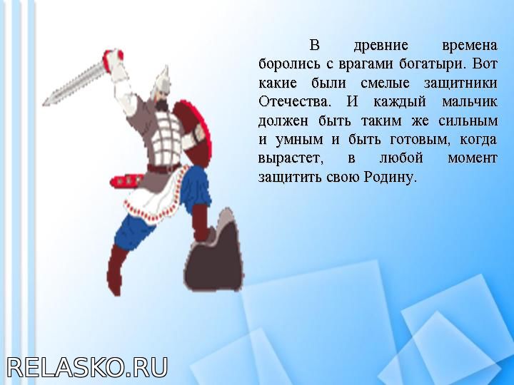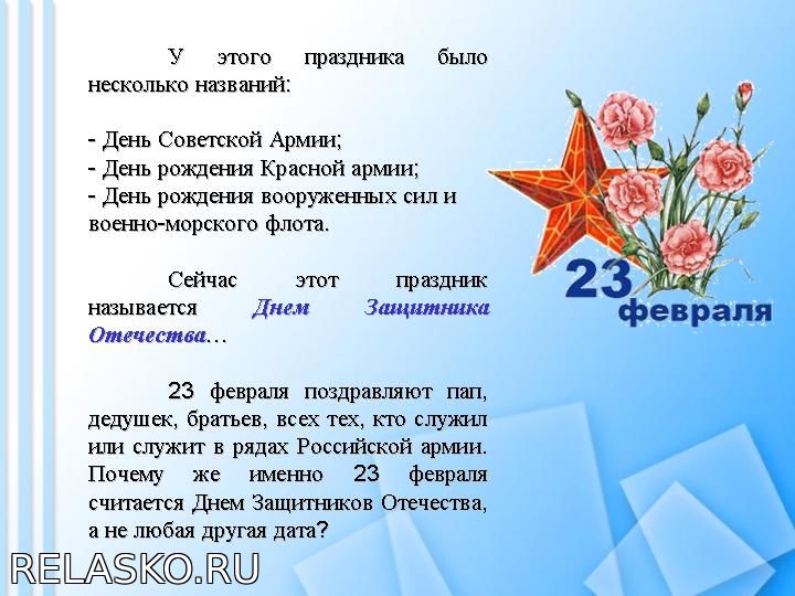 Предлагаем вам посмотреть пример доклад - презентация в картинках на тему "23 февраля - День защитника отечества " для классного часа для детского сада и начальной школы и ДОУ