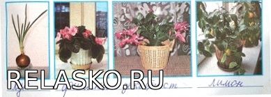 Ответ слева направо: лук, фиалка, декабрист, лимон.