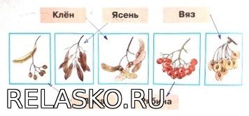 Узнай лиственные деревья по плодам. Соедини линиями рисунки и названия