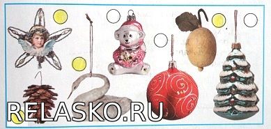 Рассмотри фотографии новогодних игрушек. Отметь (закрась кружок) те, которые тебе кажутся старинными