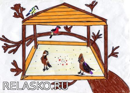 Понаблюдайте за птицами у кормушки. По результатам наблюдений напиши рассказ. Проиллюстрируй его рисунком.