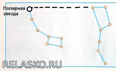 Задание 1. Найди на рисунке Полярную звезду и подпиши ее. Объясни (устно), как тебе удалось отыскать эту звезду среди других.