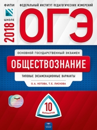 Серия «ОГЭ. ФИПИ — школе» подготовлена разработчиками контрольных измерительных материалов (КИМ) основного государственного экзамена. В сборнике представлены: • 10 типовых экзаменационных вариантов, составленных в соответствии с проектом демоверсии КИМ ОГЭ по обществознанию 2018 года; • инструкция по выполнению экзаменационной работы; • ответы ко всем заданиям; • критерии оценивания. Выполнение заданий типовых экзаменационных вариантов предоставляет обучающимся возможность самостоятельно подготовиться к государственной итоговой аттестации в 9 классе, а также объективно оценить уровень своей подготовки. Учителя могут использовать типовые экзаменационные варианты для организации контроля результатов освоения школьниками образовательных программ основного общего образования и интенсивной подготовки обучающихся к ОГЭ.