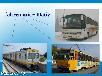 Поезжай на следующем автобусе. Ich fahre mit dem Bus zur Schule.