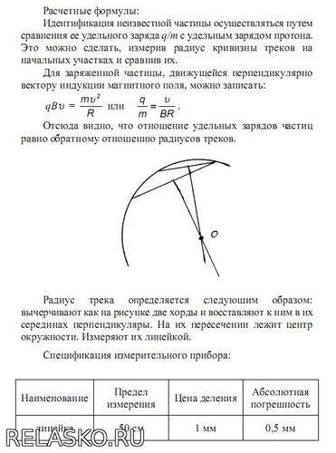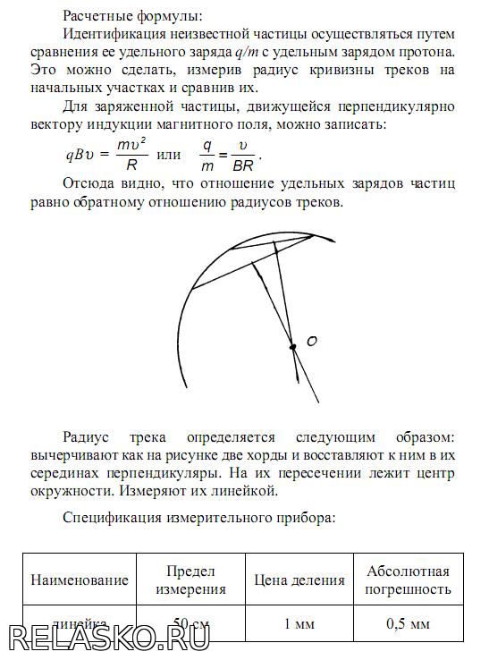 Цель работы: в работе требуется провести идентификацию заряженной частицы по результатам сравнения ее трека с треком протона в камере Вильсона, помещенной в магнитное поле.