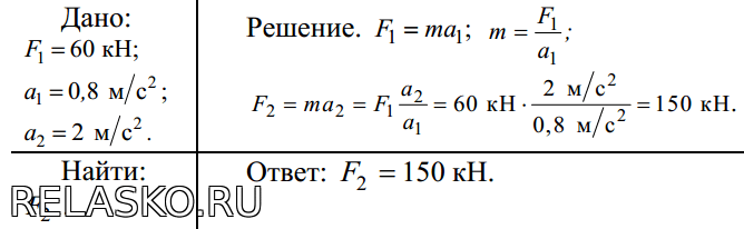 Сила 60 Н сообщает телу ускорение 0,8 м/с2. Какая сила сообщит этому телу ускорение 2 м/c2?