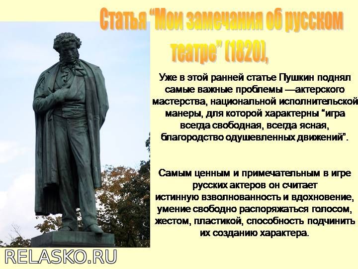 Презентация - доклад на тему: А. С. Пушкин и театр
