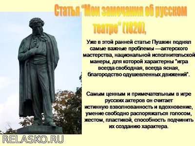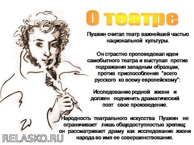 Предлагаем вам посмотреть и прочитать пример доклад - презентация в картинках на тему "А. С. Пушкин и театр" для классного часа начальной и средней школы России ФГОС, ФИПИ и УДД. Школа 21 века.