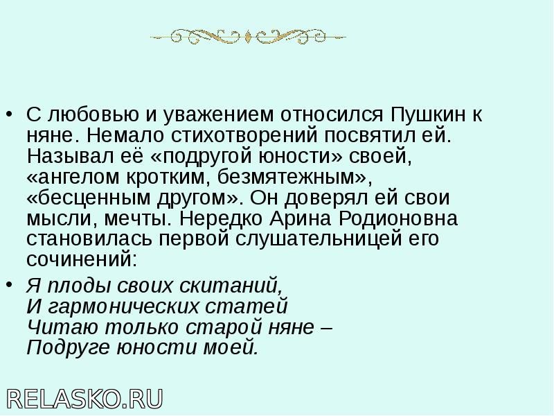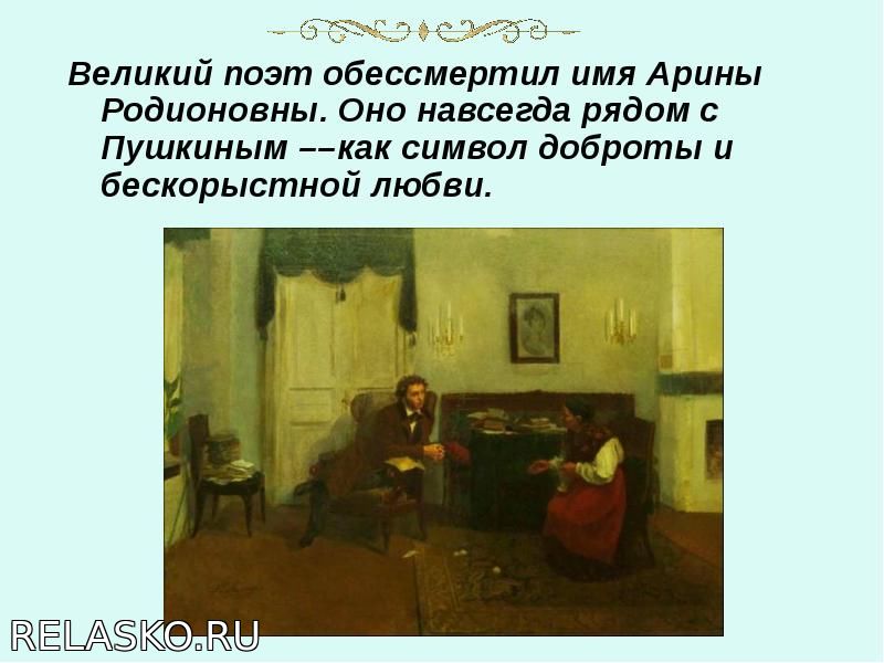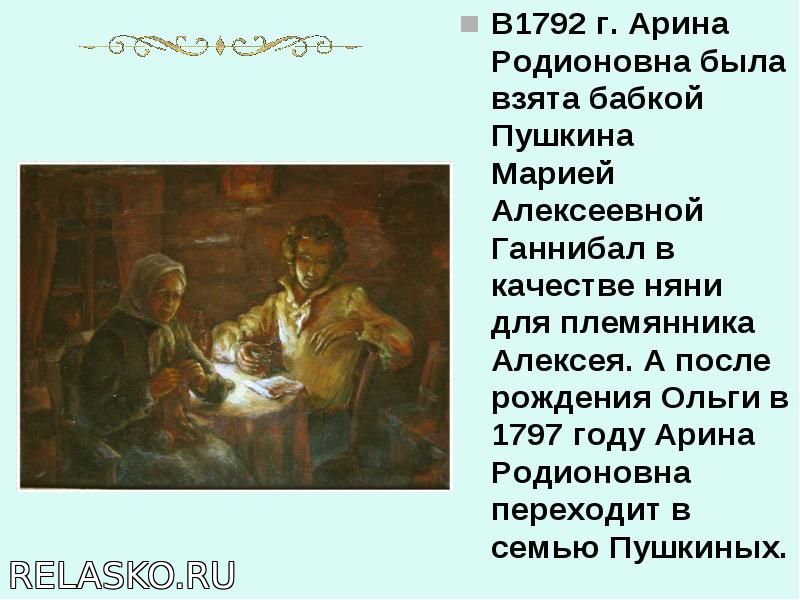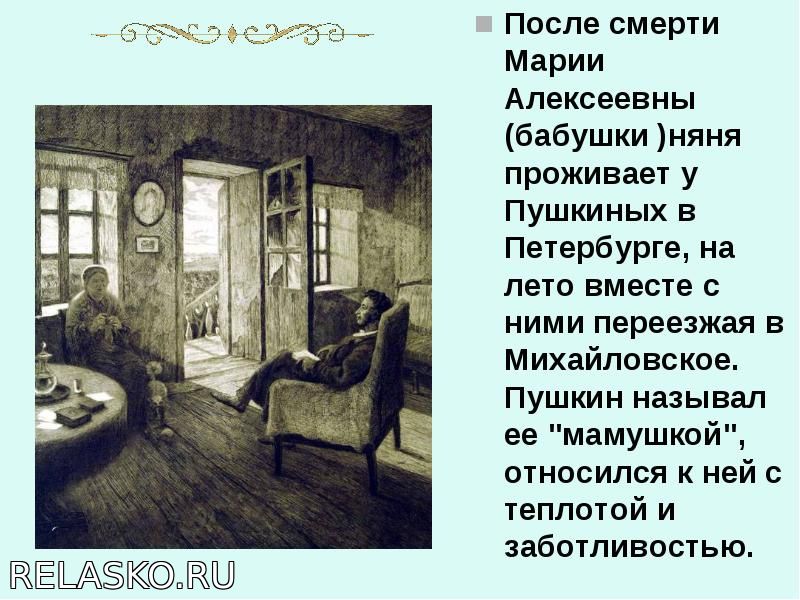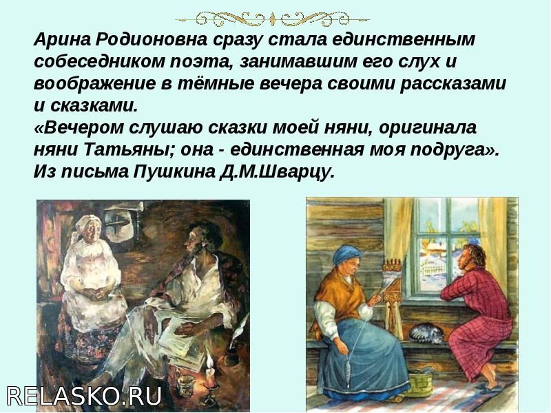 Предлагаем вам посмотреть и прочитать пример доклад - презентация в картинках на тему "А. С. Пушкин и няня" для классного часа начальной и средней школы России ФГОС, ФИПИ и УДД. Школа 21 века.