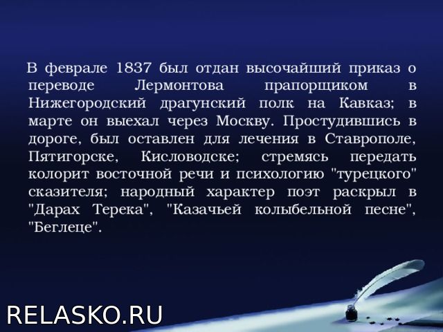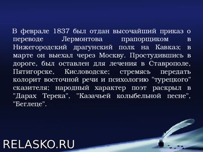 Предлагаем вам посмотреть и прочитать пример доклад - презентация в картинках на тему " М. Ю. Лермонтов. Жизнь и творчество" для классного часа начальной и средней школы России ФГОС, ФИПИ и УДД. Школа 21 века.