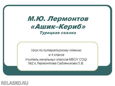 Презентация - доклад на тему: М. Ю. Лермонтов. Ашик–Кериб