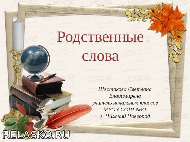 Предлагаем вам посмотреть и прочитать пример доклад - презентация в картинках и карточках на тему "Родственные слова" для классного часа начальной и средней школы России ФГОС, ФИПИ, ПНШ и УДД. Школа 21 века.
