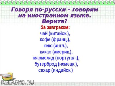 Презентация - доклад на тему: Исконно русские и заимствованные слова