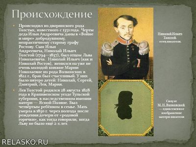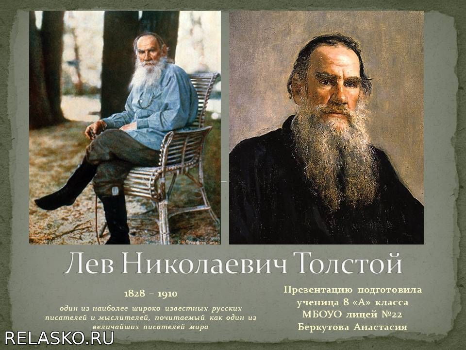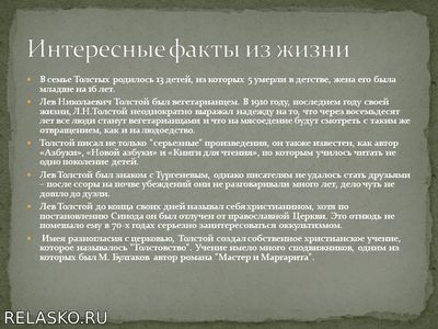 Предлагаем вам посмотреть и прочитать пример доклад - презентация в картинках на тему "Интересные Факты и Биография из жизни Толстого Льва Николаевича" для классного часа начальной и средней школы России ФГОС, ФИПИ и УДД. Школа 21 века.