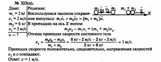 Два неупругих тела, массы которых 2 и 6 кг, движутся навстречу друг другу со скоростями 2 м/с каждое. С какой скоростью и в каком направлении будут двигаться эти тела после удара?