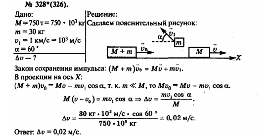 С судна массой 750 т произведен выстрел из пушки в сторону, противоположную его движению, под углом 60° к горизонту. На сколько изменилась скорость судна, если снаряд массой 30 кг вылетел со скоростью 1 км/с относительно судна?
