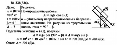 | Автомобиль массой 10т движется под уклон по дороге, составляющей с горизонтом угол, равный 4°. Найти работу силы тяжести на пути 100 м.