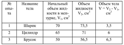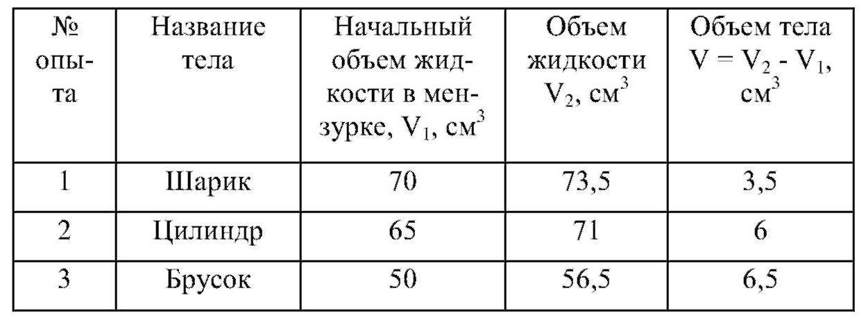 Цель работы: научиться определять объем тела с помощью измерительного цилиндра (мензурки).
