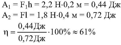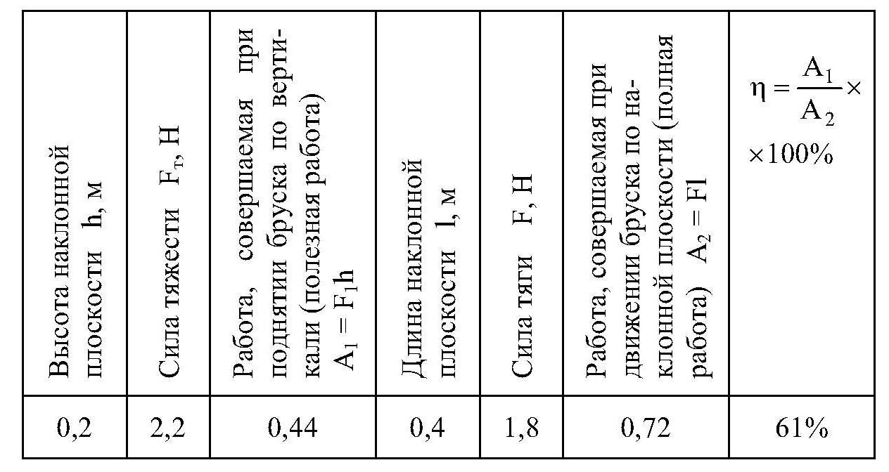 Разделив полезную работу на полную, получим КПД наклонной плоскости и выразим его в процентах