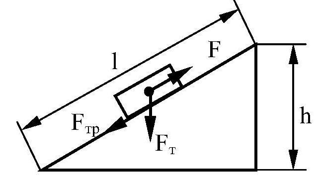 "Золотое правило" механики гласит, что при отсутствии силы трения работа, совершенная при подъеме тела вверх по вертикали на высоту h равна работе при подъеме тела по наклонной плоскости на высоту h при равномерном перемещении тела.