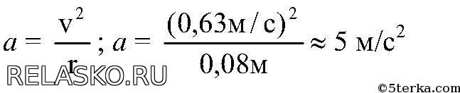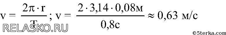 3) Скорость при равномерном движении по окружности v = 0,63м/с