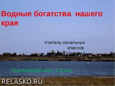 Презентация - доклад на тему: Водные богатства нашего края. 4 класс