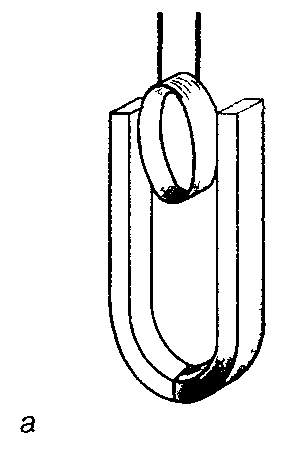 4. Расположите проволочный моток между полюсами магнита так, как это показано на рисунке 144, а. Замкнув цепь, наблюдайте явление. Сделайте выводы.