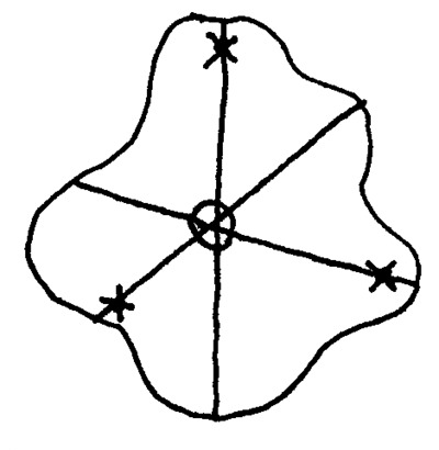 Задача о нахождении центра тяжести очень важна в механике. Понятно, что она наиболее проста для симметричных плоских тел: пересечение диаметров круга или диагоналей квадрата и является их центром тяжести. Следует отметить, что центр тяжести может находиться как внутри тела, так и снаружи. В девятой работе мы будем подвешивать исследуемую пластину и с помощью отвеса проводить линии «массовой симметрии». Понятно, что с каждой стороны этих линий останутся равные части массы тела. Точка пересечения этих линий будет центром масс пластины.