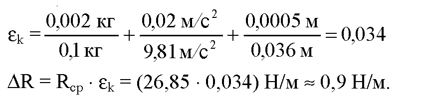 откуда Δk — εkk. Существует правило для расчета относительной погрешности: если определяемая в опыте величина находится в результате умножения и деления приближенных величин, входящих в расчетную формулу, то относительные погрешности складываются. В данной работе