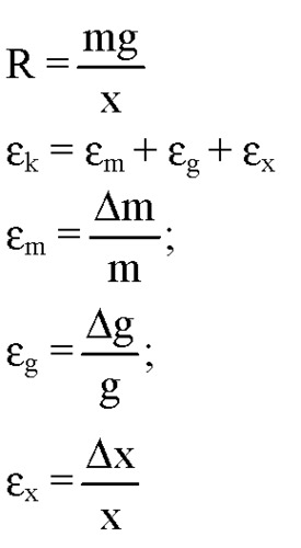 где F - приложенная к пружине сила, а х - изменение длины пружины под ее действием. Средства измерения: набор грузов, масса каждого равна m0 = (0,1±0,002) кг.