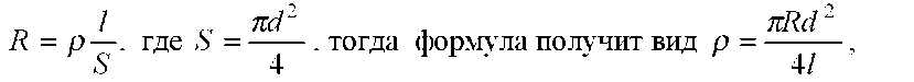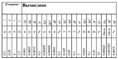 Цель работы: научиться вычислять удельное сопротивление проводника Для выполнения работы необходима проволока из материала с большим удельным сопротивлением. Сопротивление - основная электрическая характеристика проводника. Сопротивление зависит от материала проводника и его геометрии. Сопротивление длиной I и с постоянной площадью поперечного сечения 51 равно: