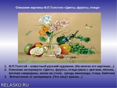 Сочинение по картине Толстого "Цветы, фрукты, птица" 5 класс