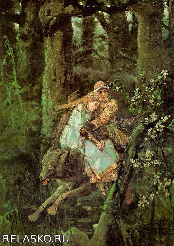 Совсем недавно мне выпала честь ознакомиться с картиной Васнецова «Иван – Царевич на сером волке». Ее автор взял за основу одну из моих любимых сказок и изобразил Ивана-Царевича с Еленой Прекрасной, которые мчат по лесу верхом на волке. Окружающий их темный лес густой, мрачный и страшный вызывает не что иное, как страх и ужас.