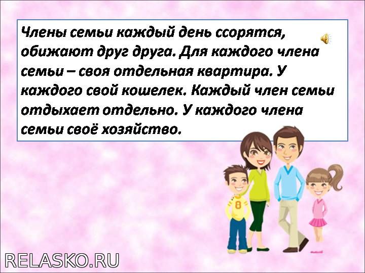 Предлагаем вам посмотреть и прочитать образец или пример доклад - презентация к уроку в картинках и карточках на тему Моя семья. 4 - 5 класс для классного часа начальной и средней школы России ФГОС, ФИПИ, ПНШ и УДД.