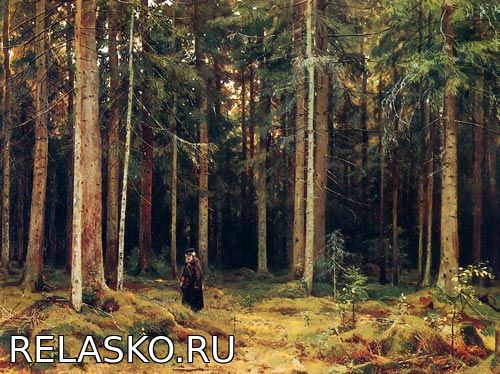 Лес не такой уж и дремучий раз художник изобразил в нем человека. Пожилой, с седой бородой человек, скорее всего лесник. Он остановился, оперся на трость и о чем-то задумался. Возможно, он просто любит гулять в тишине по этому лесу и наслаждаться звуками природы. Здесь даже воздух чище и свежее. Еловый лес – прекрасное место для размышлений, где можно отвлечься от привычной жизни и подумать на серьезные темы или о каких-то мелочах. И.И. Шишкин написал такую картину, глядя на которую буквально погружаешься в еловый лес и чувствуешь запах хвои и нагретого на солнце мха. Хочется, как человек на картине встать среди могучих великих елей и подумать о чем-то своем.