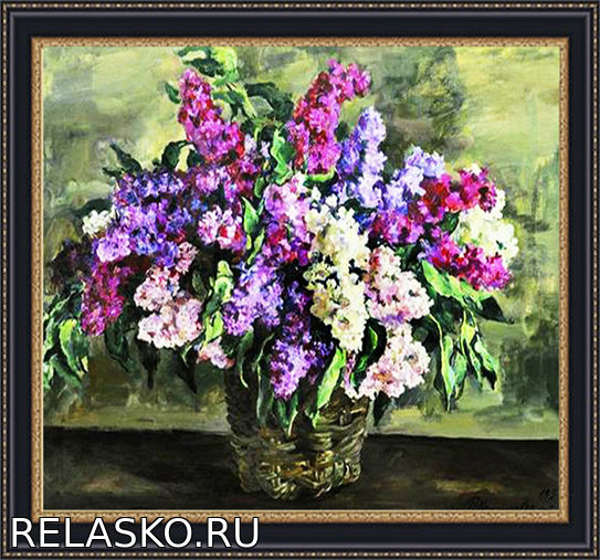 Картина поистине искусно выполнена. Яркие цветы будто так и хотят поднять настроение. Когда смотришь на такие цветы, то очень хочется их подарить только близкому человеку, который тебе по-своему дорог, очень хочется наслаждаться их ароматом, любоваться их видом. Так много красок, очень тонко показаны листочки сирени. Много тонкостей видел автор этой картины.