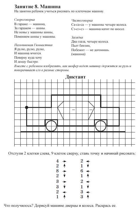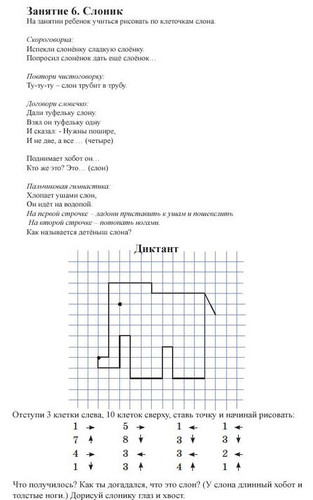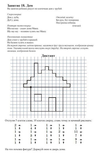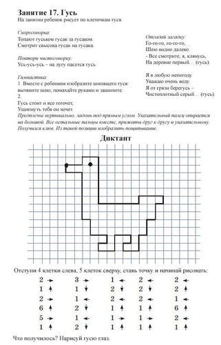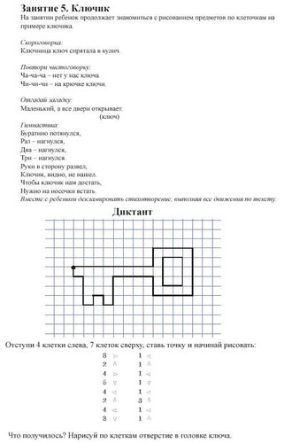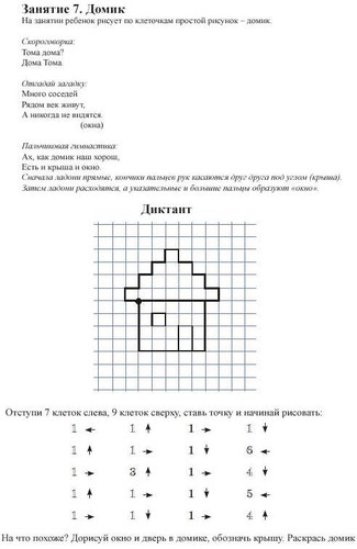 Графический диктант по клеточкам для первоклассников - это развивающая игра для старших дошкольников и учеников 1 класса, учит ориентироваться на листе бумаги, развивает зрительное и слуховое восприятие, произвольность внимания и памяти. Помогает сформировать у детей старшего дошкольного возраста графические умения, необходимые для подготовки руки к письму. Графические диктанты развивают мелкую моторику и координацию движений руки, формируют пространственное мышление.