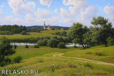 Кажется, что воздух на картине напоён пьянящим ароматом луговых цветов и свежей травы. Всматриваешься в прозрачную даль и слышишь тихий перезвон церковных колоколов, звонкие птичьи трели да громкоголосый хор лягушек у реки. И душу переполняют радость и нежность.
