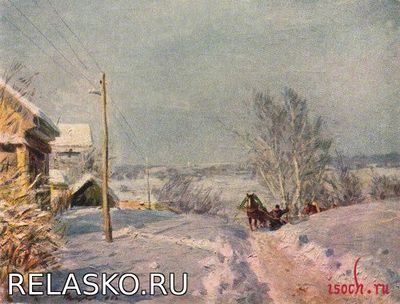 Картина полностью передает сущность зимней деревни в прошлом. Единственное что мешает окунуться с головой в прошлое. Это линии электропередач, которые идут вдоль домов. Глядя на них чувствуешь себя в настоящем, но с минимальной долей прогресса и цивилизации.