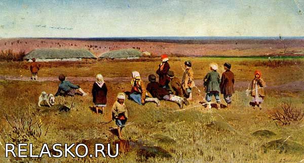 Знаменитая картина художника из товарищества передвижников Алексея Степанова написана в 1891 году. На картине изображены деревенские дети, о чем свидетельствуют характерные одежды конца 19 века – лапти, онучи, повязанные платки.