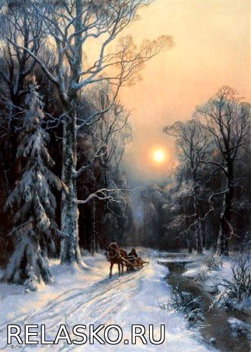 Под голубыми небесами Великолепными коврами, Блестя на солнце, снег лежит; Прозрачный лес один чернеет, И ель сквозь иней зеленеет, И речка подо льдом блестит.
