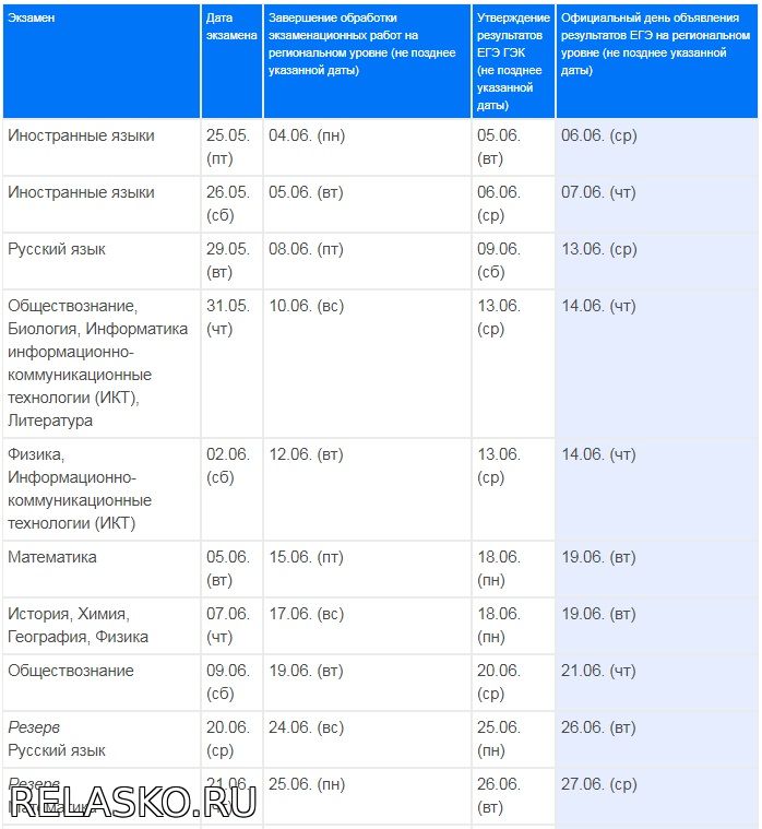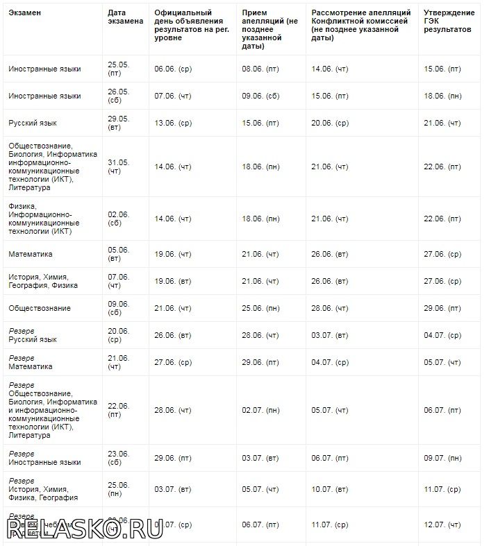 График публикации результатов ОГЭ-2018