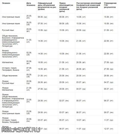 График публикации обработки апелляций на результаты ОГЭ в 2018 году для 9 классов (ГИА).